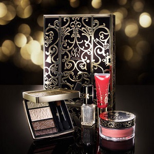 COSME DECORTE AQ MW Coffret V Праздничный набор косметики. В подарочный набор косметики входят: лак для ногтей, тени для век, палитра светлого золота, кашемира, желто – коричневого и дымчато-коричневого оттенков, малиновый красный блеск для губ с золотом, светящиеся румяна.