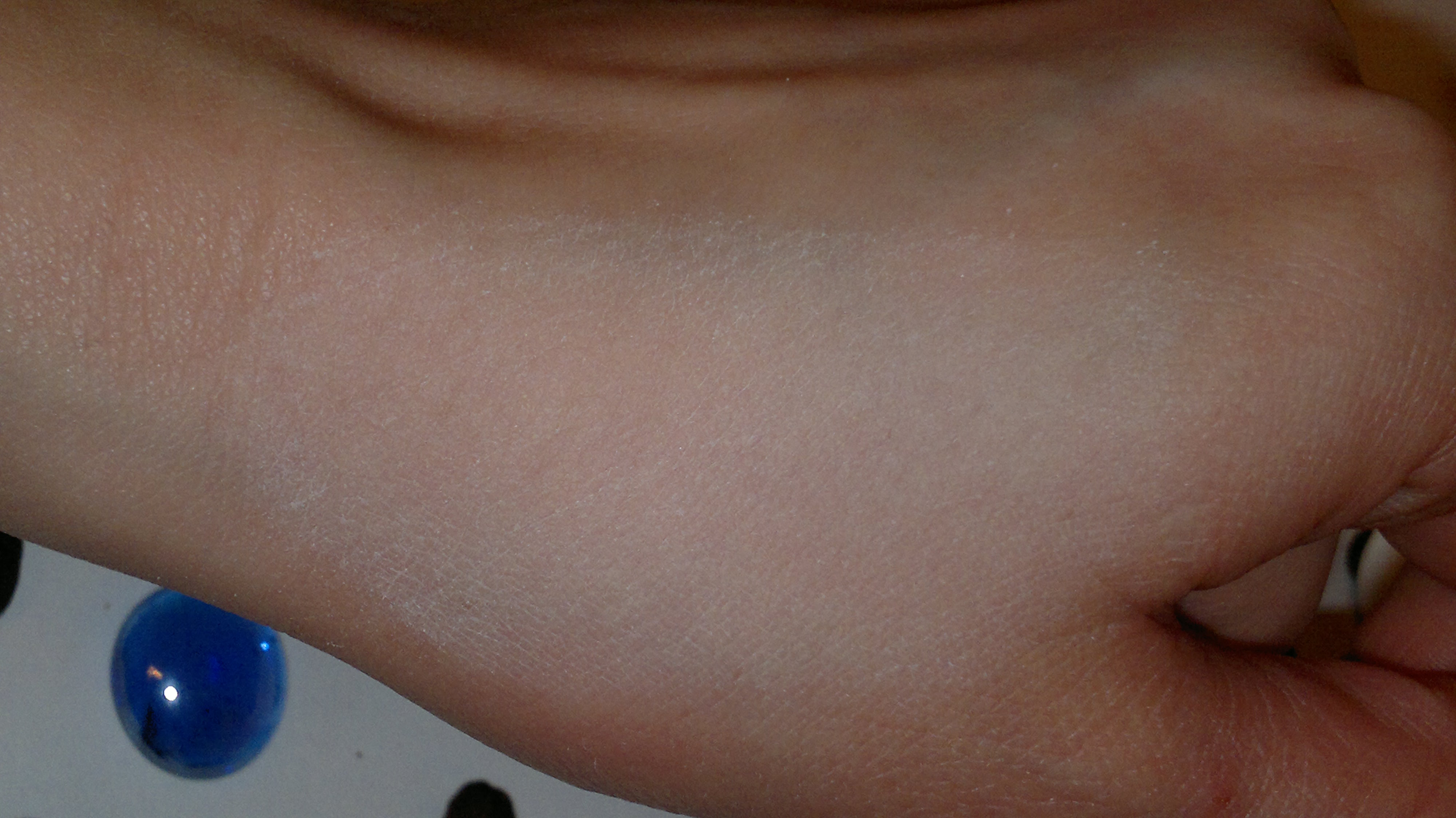 Пудра белого цвета, она плотно прессованная. Изначально имела на поверхности структурный рисунок. Пудра очень нежная и мельчайшего помола. В упаковке она белая, а на коже полупрозрачная