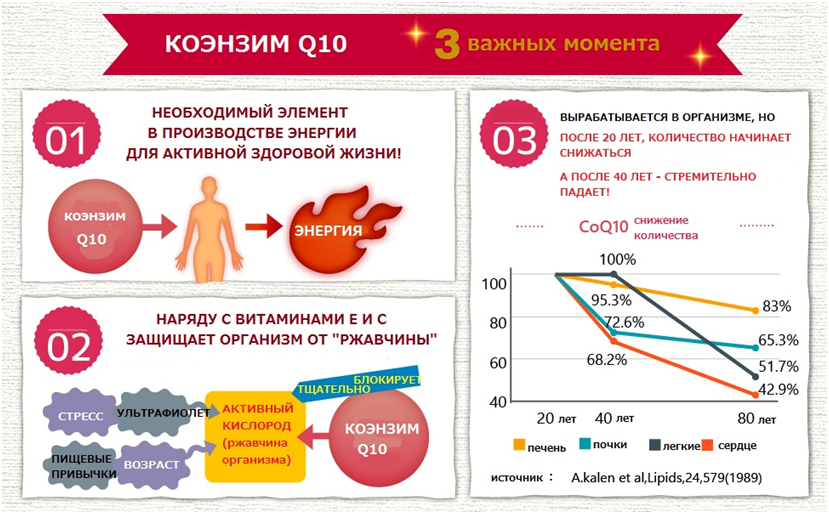 После 40 лет количество Коэнзима Q10 в важнейших органах также начинает стремительно снижаться. Его восполнение – ключ к здоровой и долгой жизни!