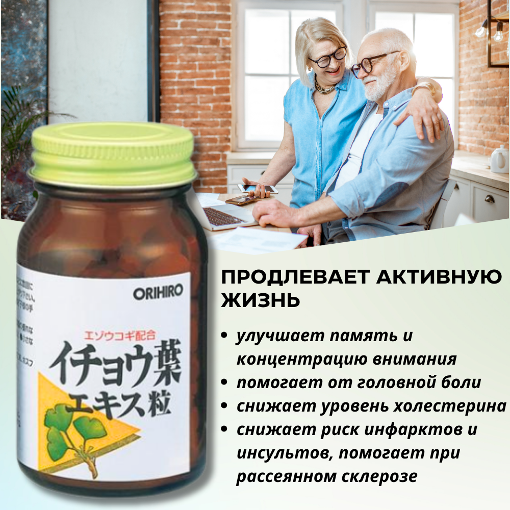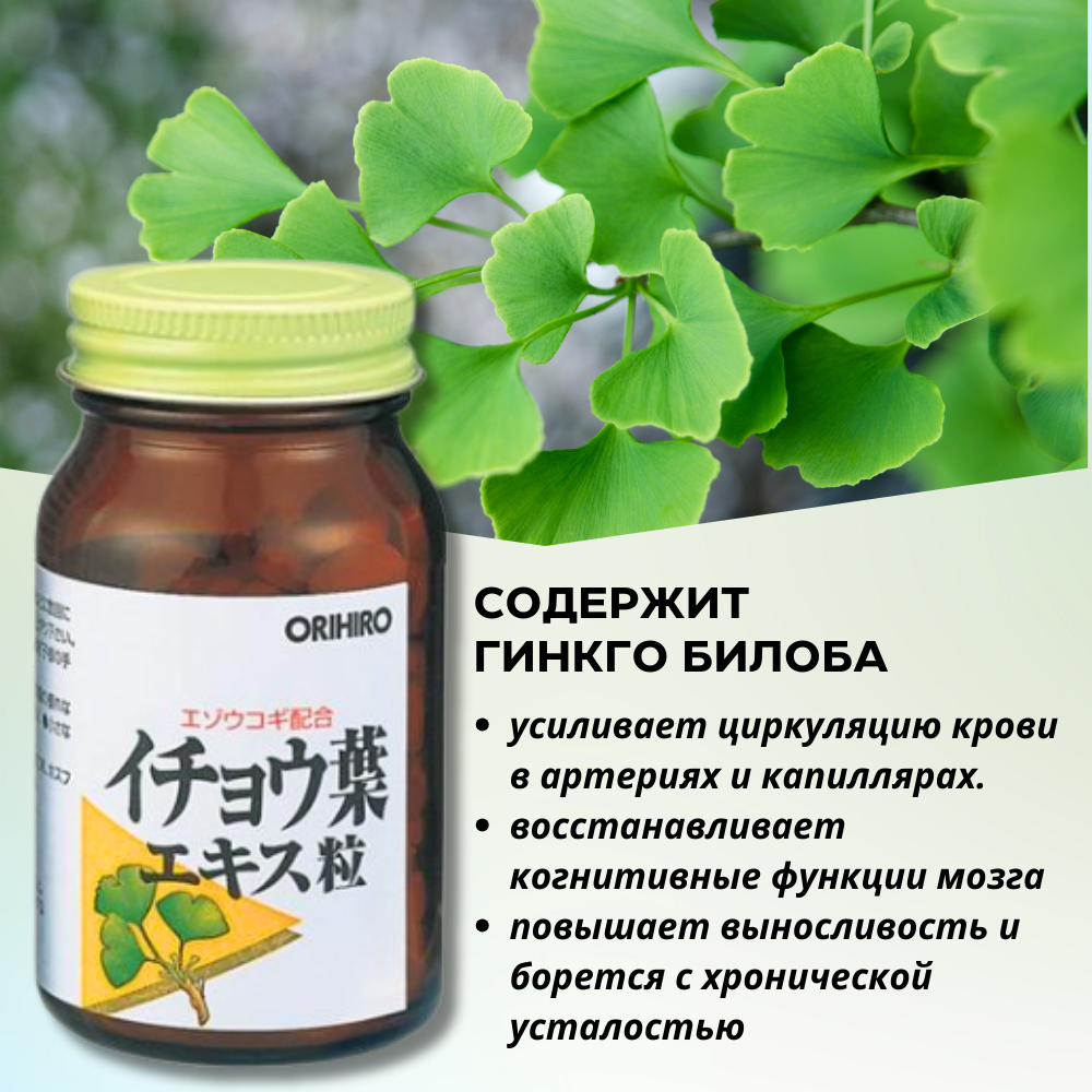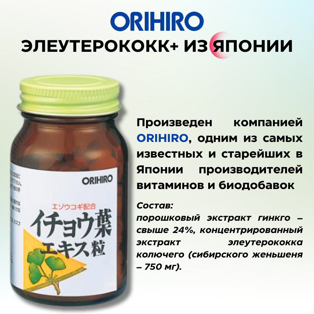 Описание товара: ORIHIRO Элеутерококк + Гинко Билоба, 240 штук.