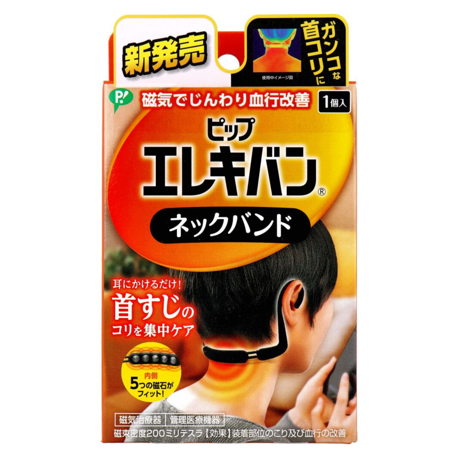 Pip Elekiban Neckband - новая разработка для тех, кого беспокоит скованность в области шеи. Магнитное поле PIP Elekiban улучшает кровообращение в мышцах, тустраняя скованность и боль.Конструкция с креплением на ушах, при этом магнит непосредственно касается верхней части шеи, до которой трудно добраться.