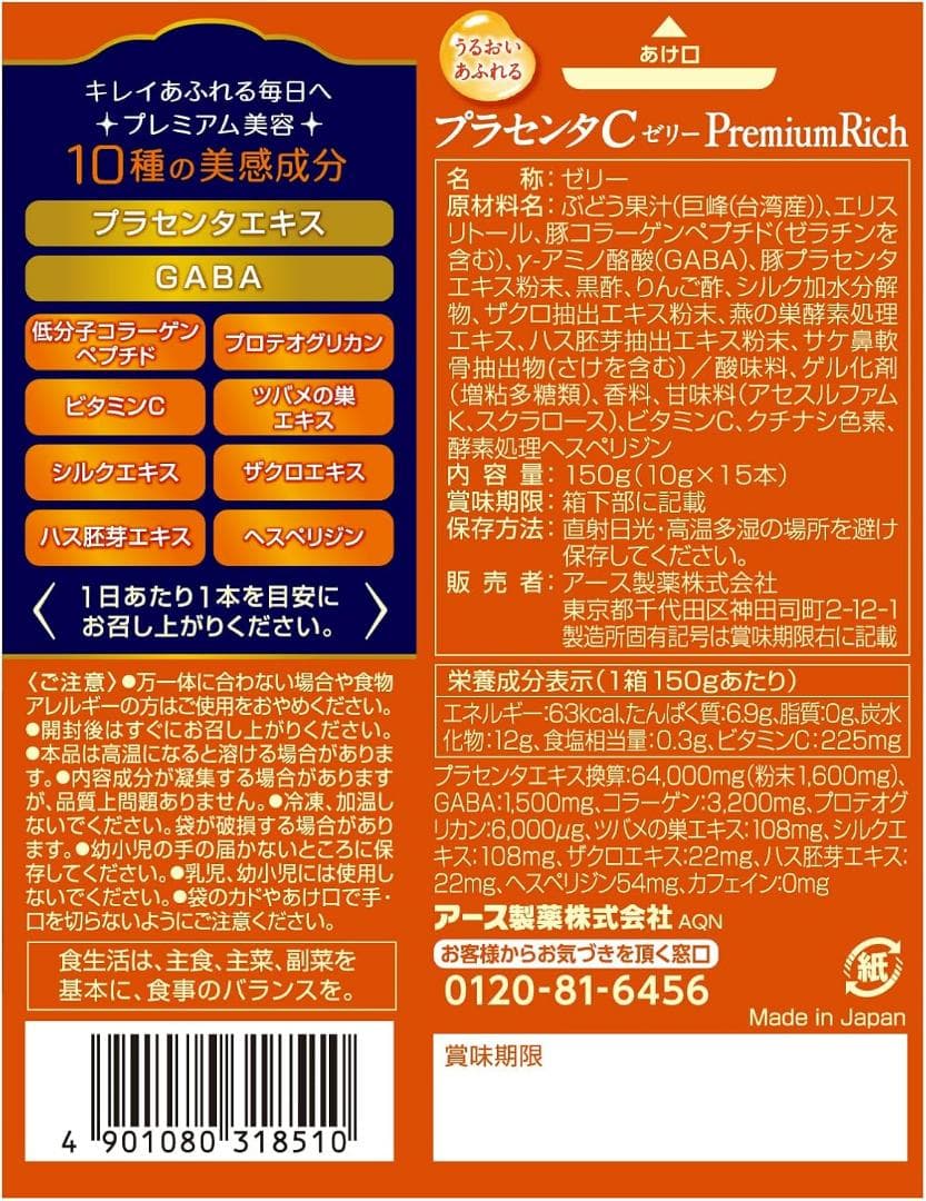 EARTH Placenta C Jelly Premium Rich Увлажняющее плацентарное желе со вкусом японского винограда, 15 стиков