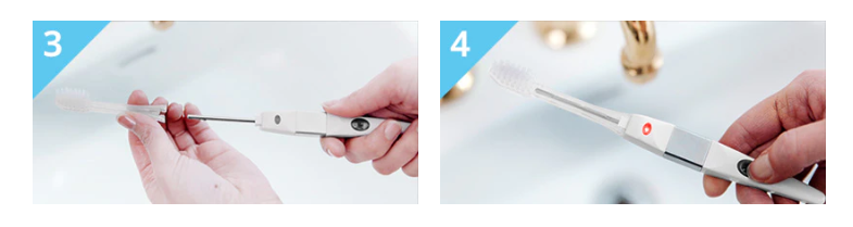 -Щетки KISS YOU полируют и отбеливают зубы, притягивая положительно заряженные частицы налета за счет отрицательно-заряженных ионов на щетине, которые активизируются при соприкосновении пальца и датчика на ручке корпуса.