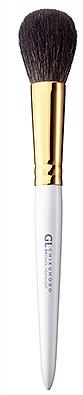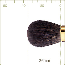 This cheek/highlighter brush is made from a blend of gray squirrel and coarse goat bristles, which feel soft against the skin. The stepped tip allows for precise application and fine detail. It can also be used for blending.