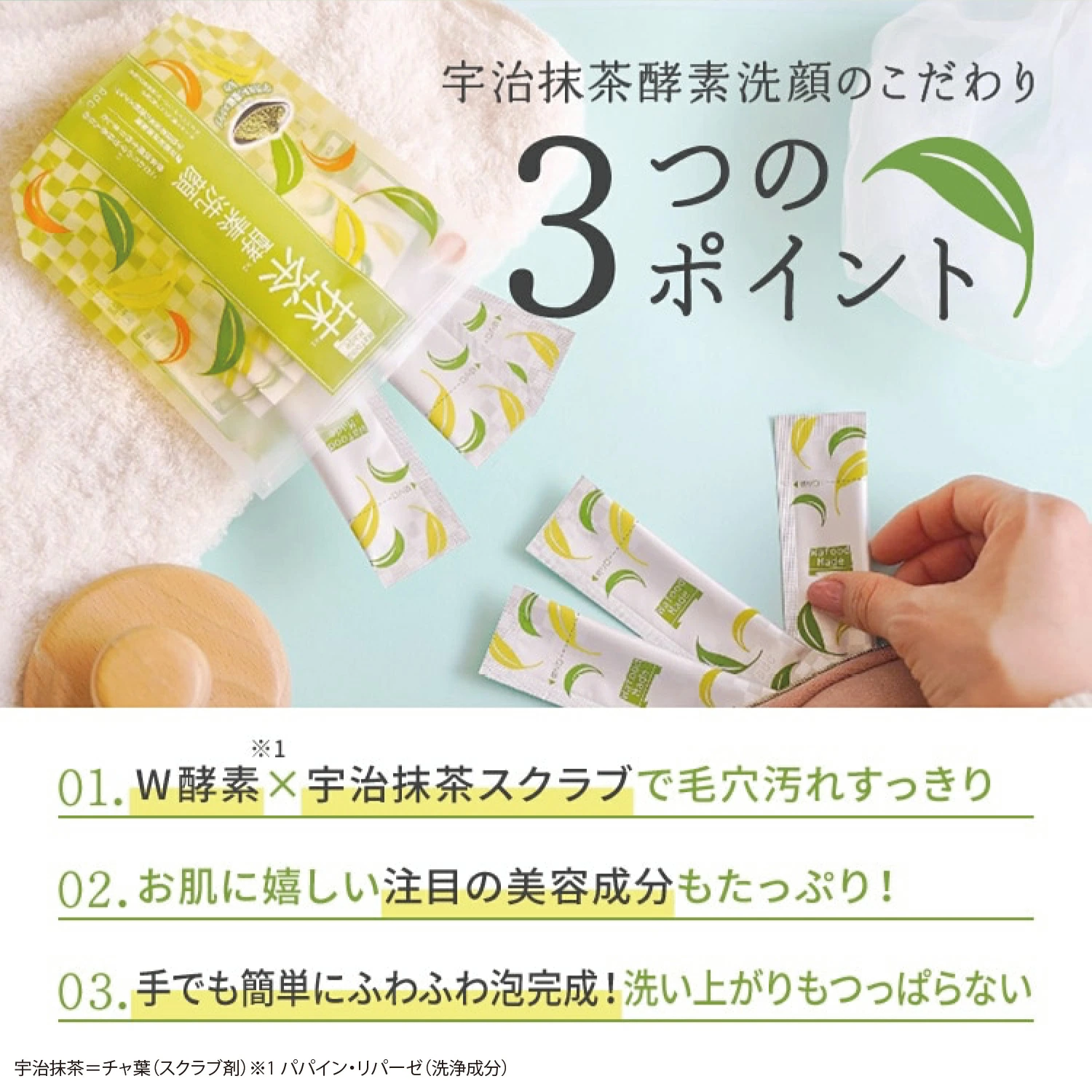 Wafood Made Uji Matcha Enzyme Facial Wash Cleansing Enzyme Face Powder with Green Tea, 30 sachets