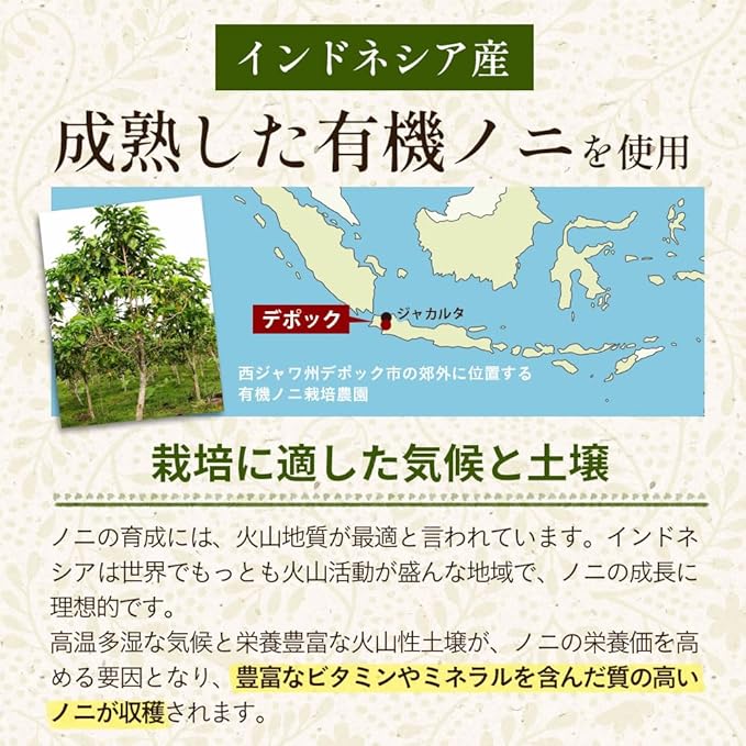 Composition (1pc): Fermented noni powder (noni fruit of Okinawa), gelatin.